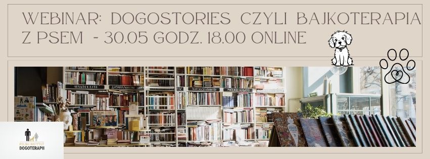 DogoStories, czyli bajkoterapia z psem. Od książki do działania – sposób na kreatywną dogoterapię. Jak połączyć książkę, emocje dziecka i obecność psa terapeutycznego w jedną spójną, angażującą metodę pracy? Zapraszają Polski Instytut Dogoterapii oraz Terapia na Cztery Łapki Nosek i Ogonek.